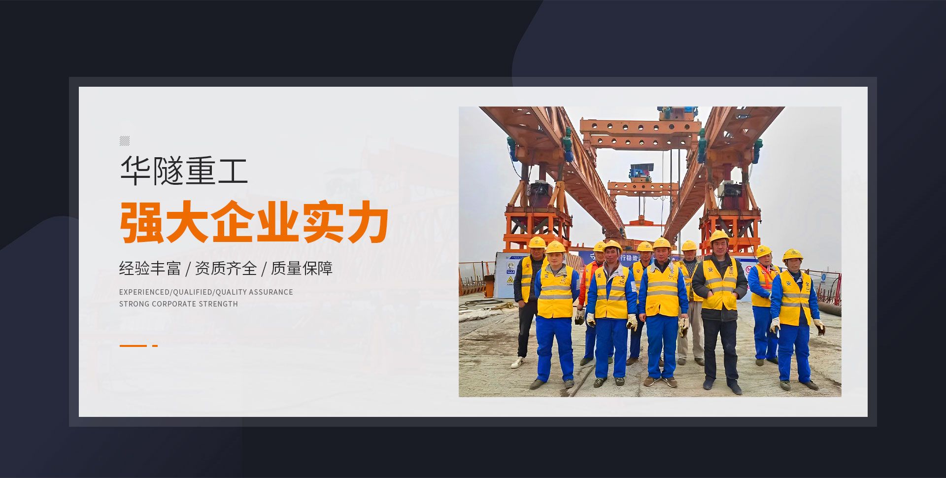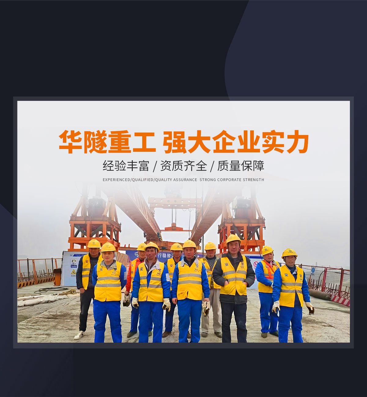 河南華隧重工機械裝備有限公司主要從事通用門式起重機、橋式起重機、電動單梁起重機,輪胎式起重機、架橋機、提梁機、遠梁平車、鋼絲繩電動萌蘆、卷揚機、起重配件制造、銷售:起重機械租賃、安裝和維修,起重設備園收,機械設備維修,鋼結構工程承包,橋梁工程及技術咨淘服務,銷售五金制品、機電設備:建設工程監理,建設工程設計,各類工程建設活動,建筑勞務分包,建筑物折除作業,施工作業,工程管理服務,土石方工程施工,裝如發運?! 」疽淹ㄟ^IS0國際質量、環境、健康與安全三合一標準認證,特種設備制造許可證和特種設備安裝改造維修許可證。擁有完熟的質量管理體系。嚴格的管理制度,強大的生產能力和先進的檢測手段,在保證產品質量的同時,也具備了極強的市場競爭力?! 」緢猿挚萍紕撔聻槔砟睿a品質量為核心,注重信譽,建立了減信可靠、快捷、思速。便利周到的售后服務網絡?! ∥覀儞碛械募夹g專家和技術服務隊伍為客戶提供充善的售前技術支持和全天候的售后服務體系,讓您無后顧之憂,享受一站式的超值服務。  “華隧重工,伴您成功“是華隧重工永遠的宗指,真被的希望與各界朋友攜手并進。共創輝準!